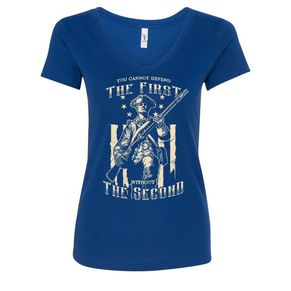 YOU CANNOT DEFEND THE FIRST WITHOUT THE SECOND you can't defend the first without the second women's v-neck t-shirt militia 2a royal blue