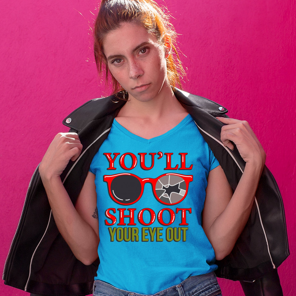 YOU'LL SHOOT YOUR EYE OUT women's v-neck t-shirt funny christmas saying tee turquoise
