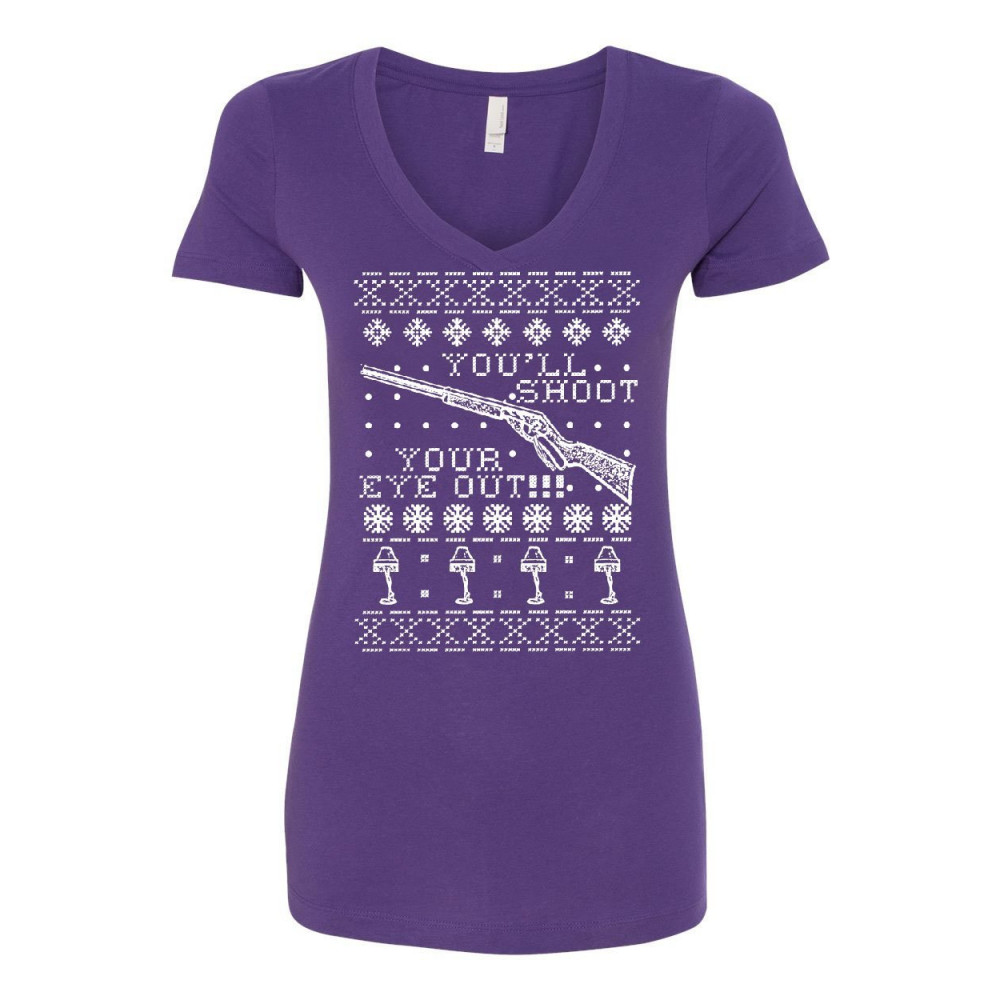YOU'LL SHOOT YOUR EYE OUT women's v-neck t-shirt funny christmas ugly sweater purple