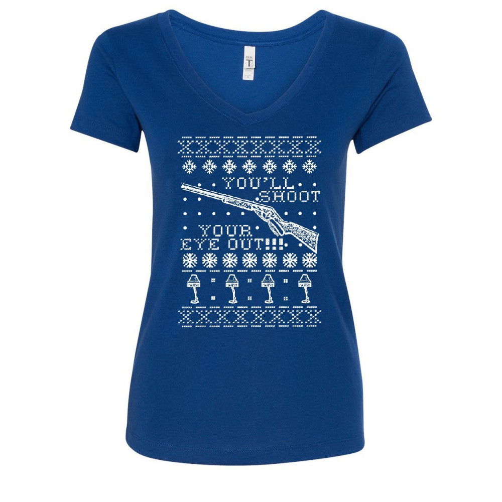YOU'LL SHOOT YOUR EYE OUT women's v-neck t-shirt funny christmas ugly sweater royal blue