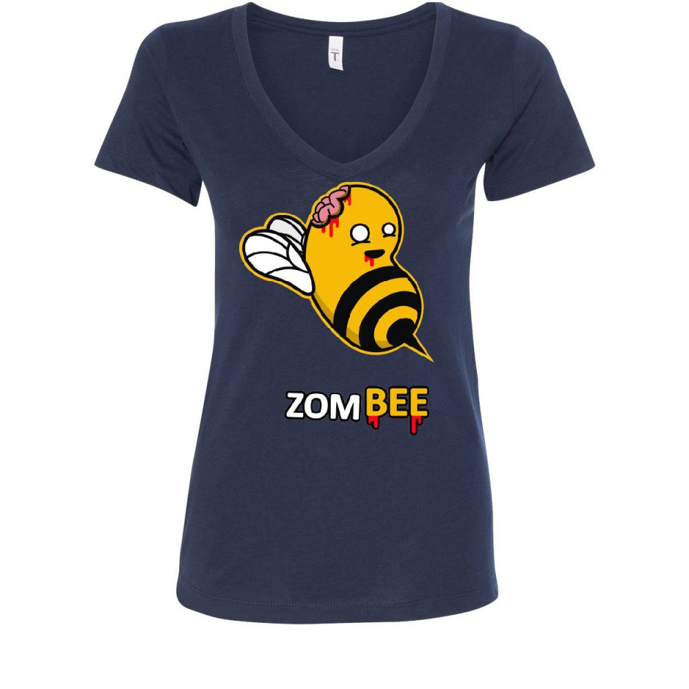 ZOMBEE women's v-neck t-shirt zombie apocalypse funny dead bee outbreak brains navy blue