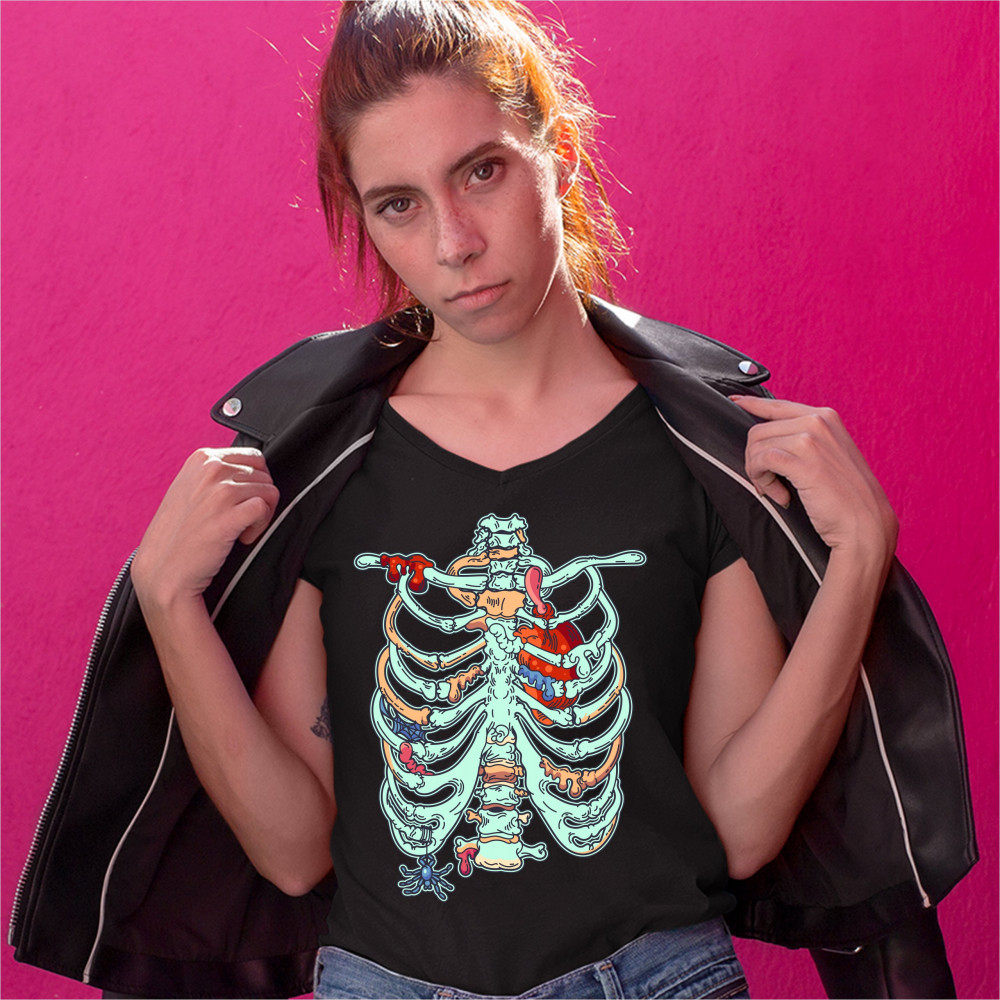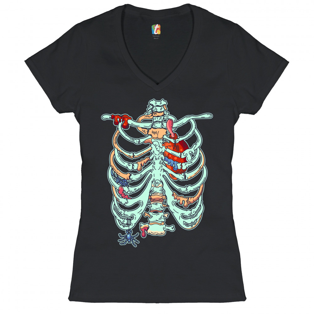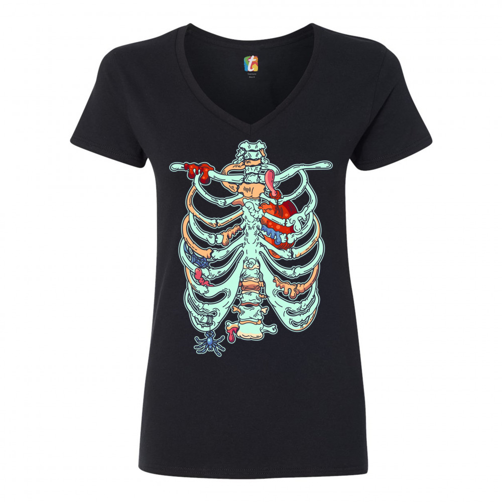 ZOMBIE RIB CAGE women's v-neck t-shirt all hallows' eve halloween skeleton tee black