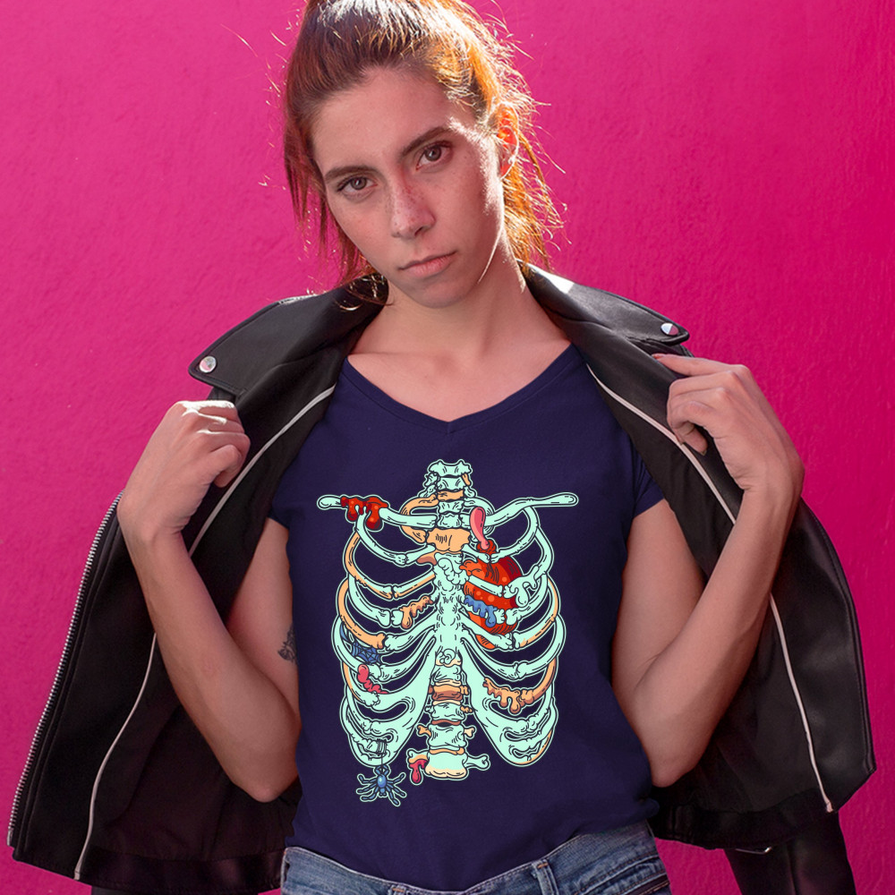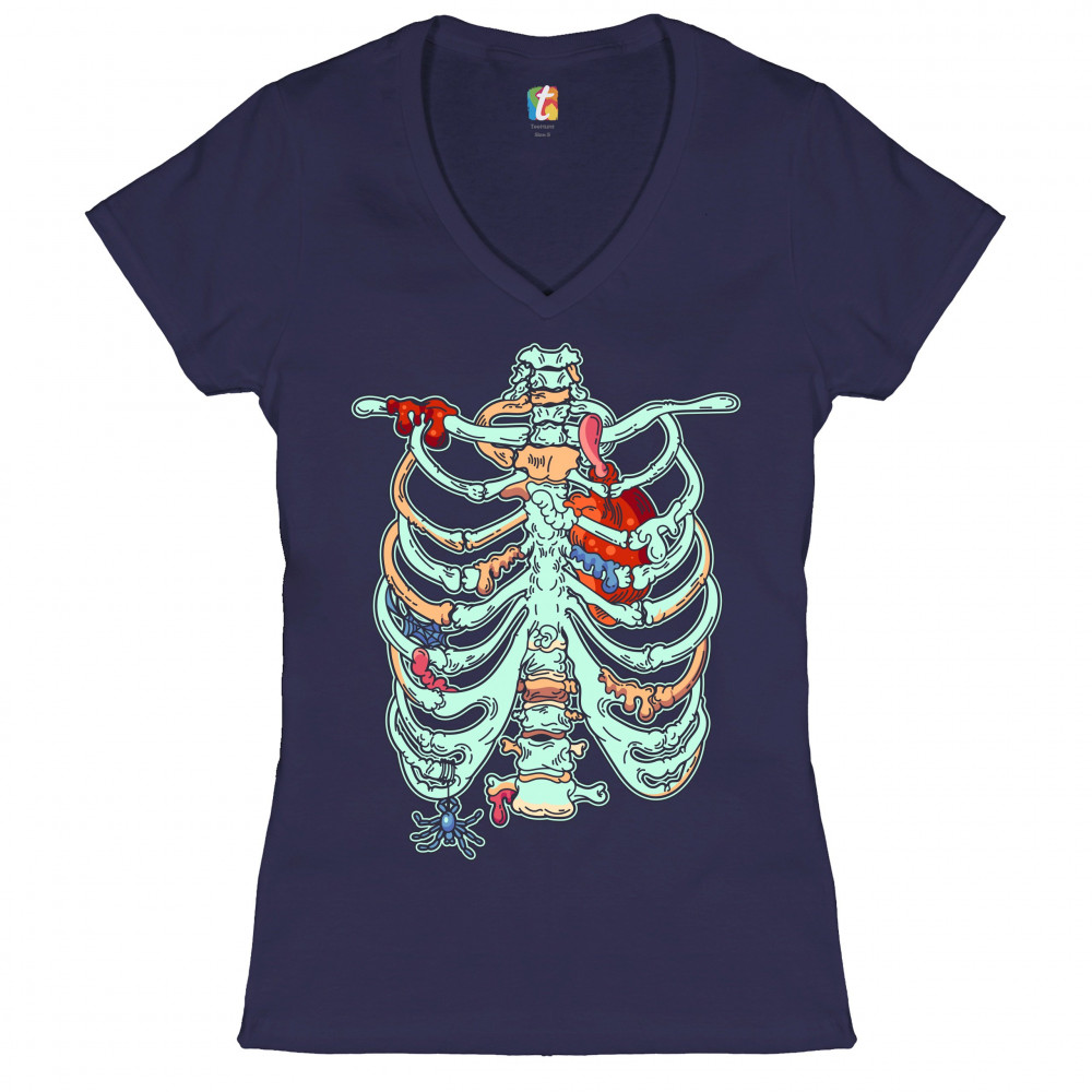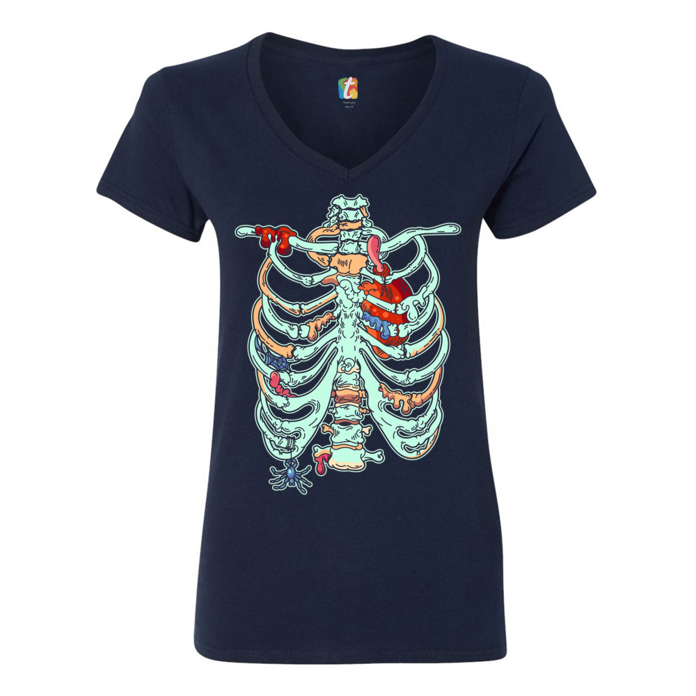 ZOMBIE RIB CAGE women's v-neck t-shirt all hallows' eve halloween skeleton tee navy blue