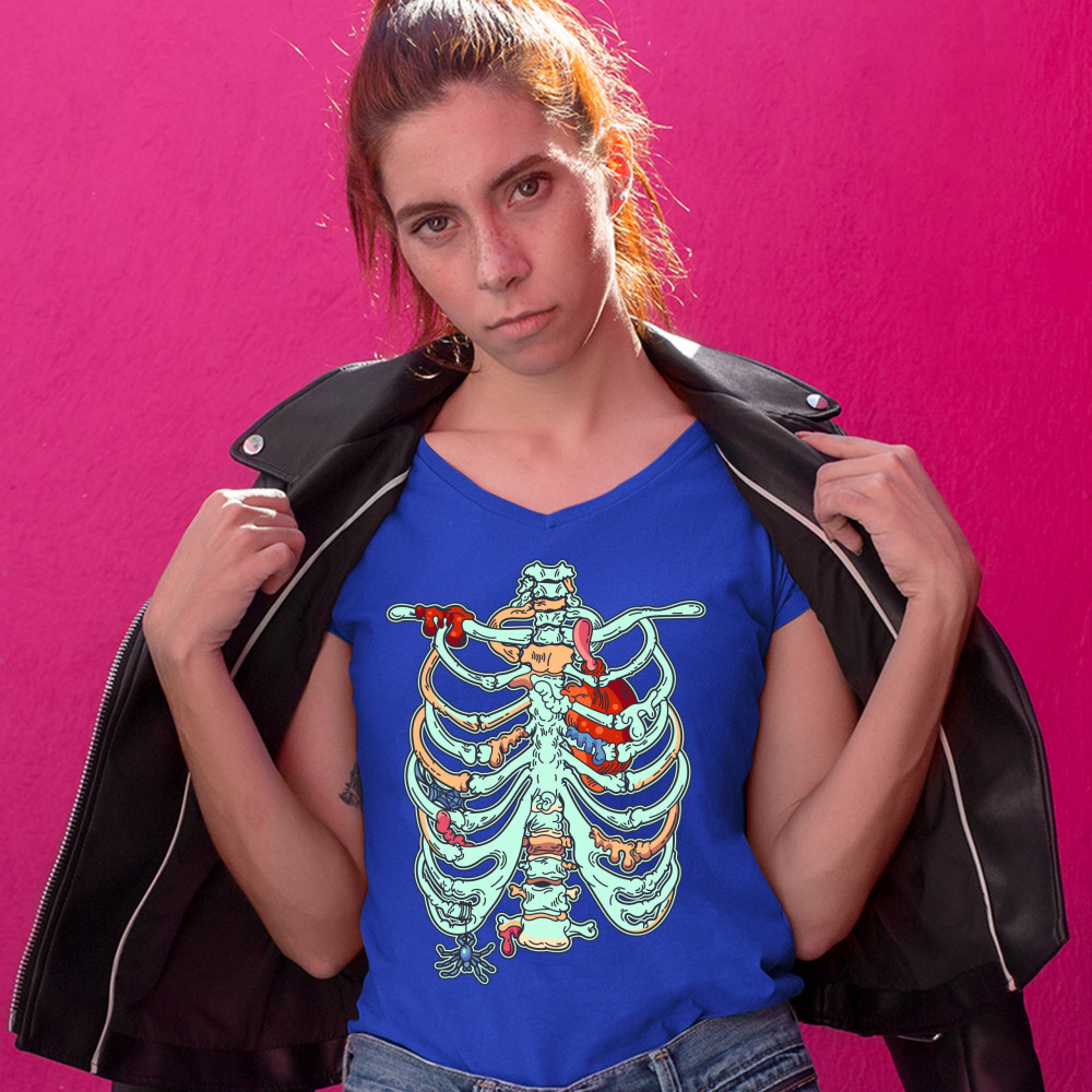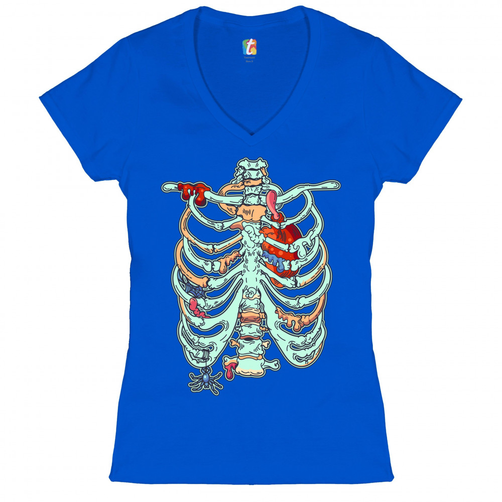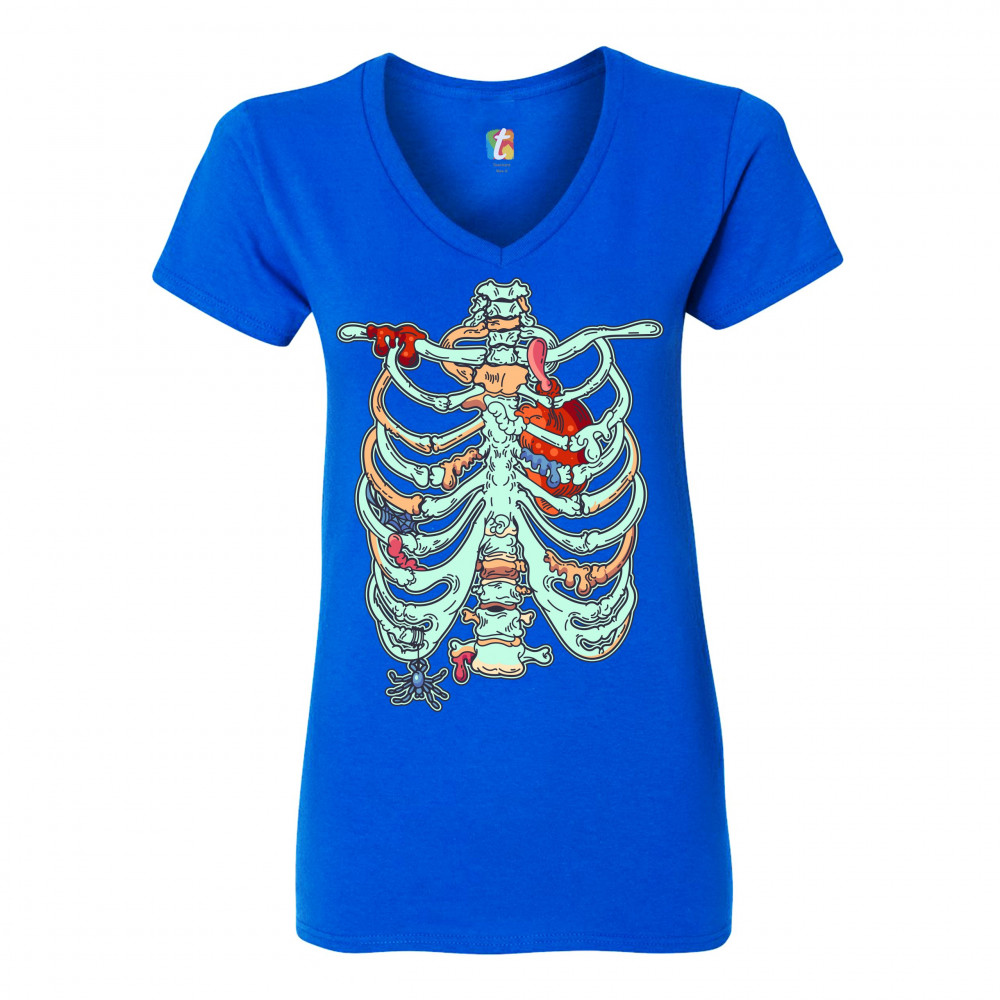ZOMBIE RIB CAGE women's v-neck t-shirt all hallows' eve halloween skeleton tee royal blue