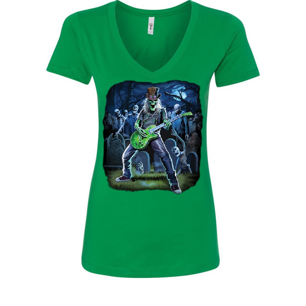 ZOMBIE ROCK women's v-neck t-shirt heavy death metal music skull hard rock green