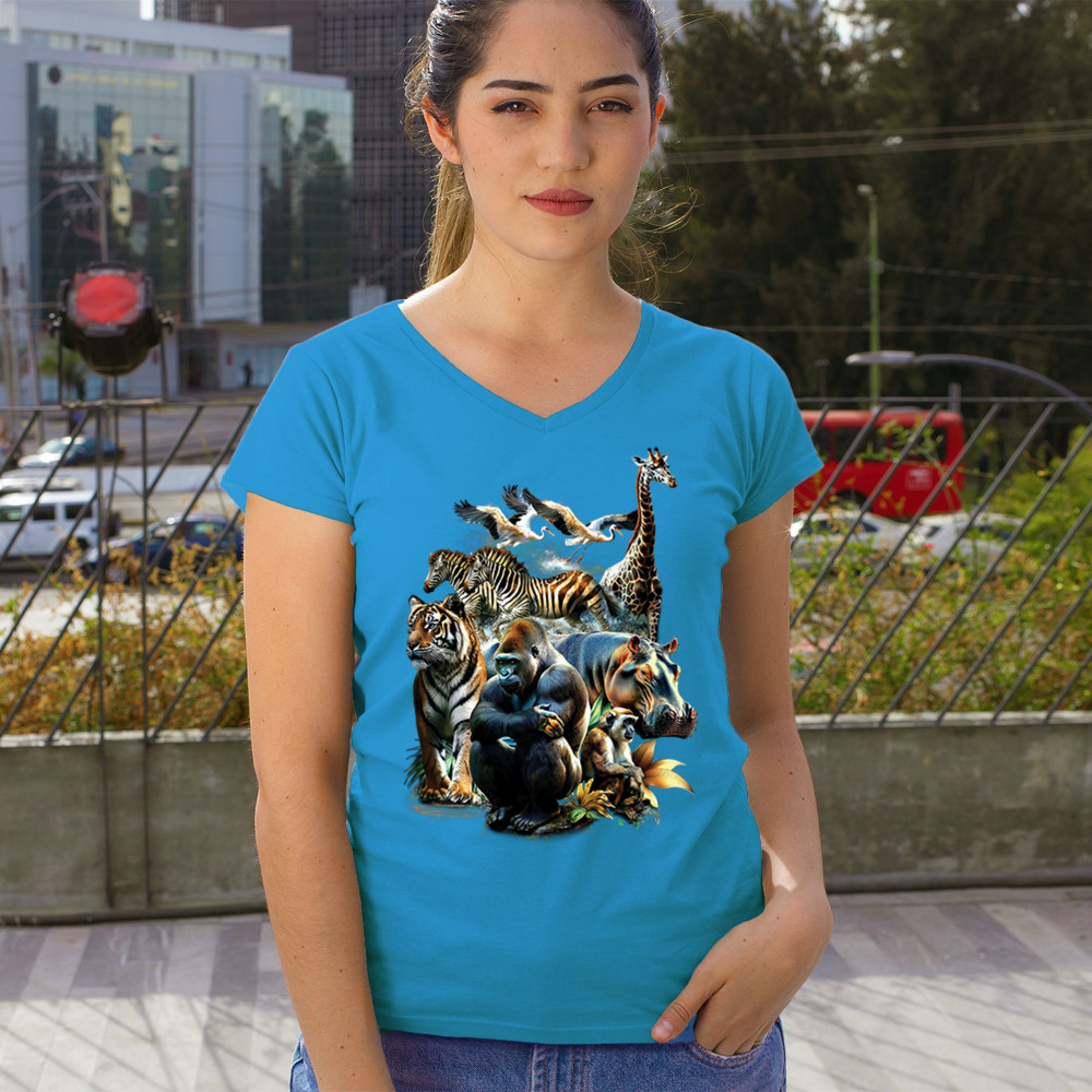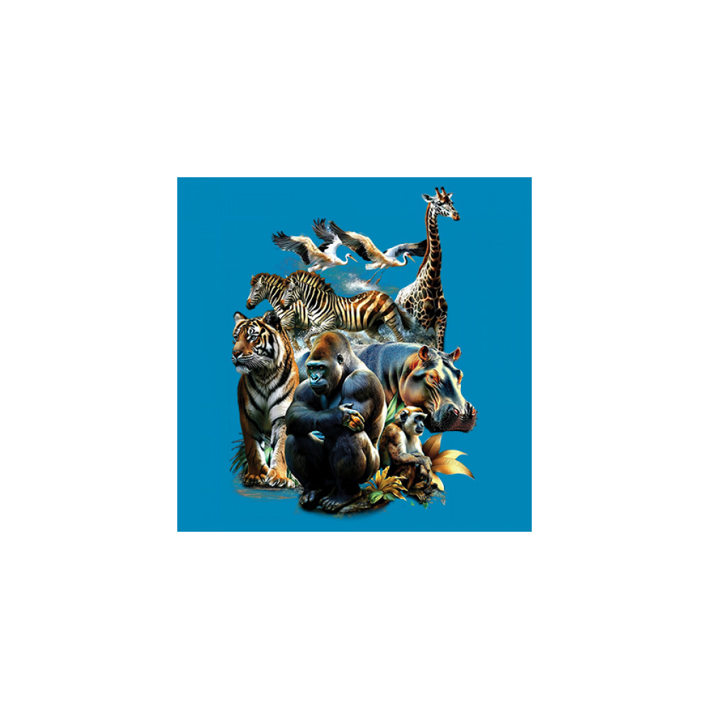 Packed with fierce energy and vibrant color, this wildlife design features a jungle coalition of gorilla, tiger, monkey, zebra, giraffe, hippo, and birds. A powerful tribute to animal beauty, biodiversity, and nature's harmony. Perfect for jungle tour enthusiasts, zoo visitors, or anyone passionate about wild conservation and stunning creature art.