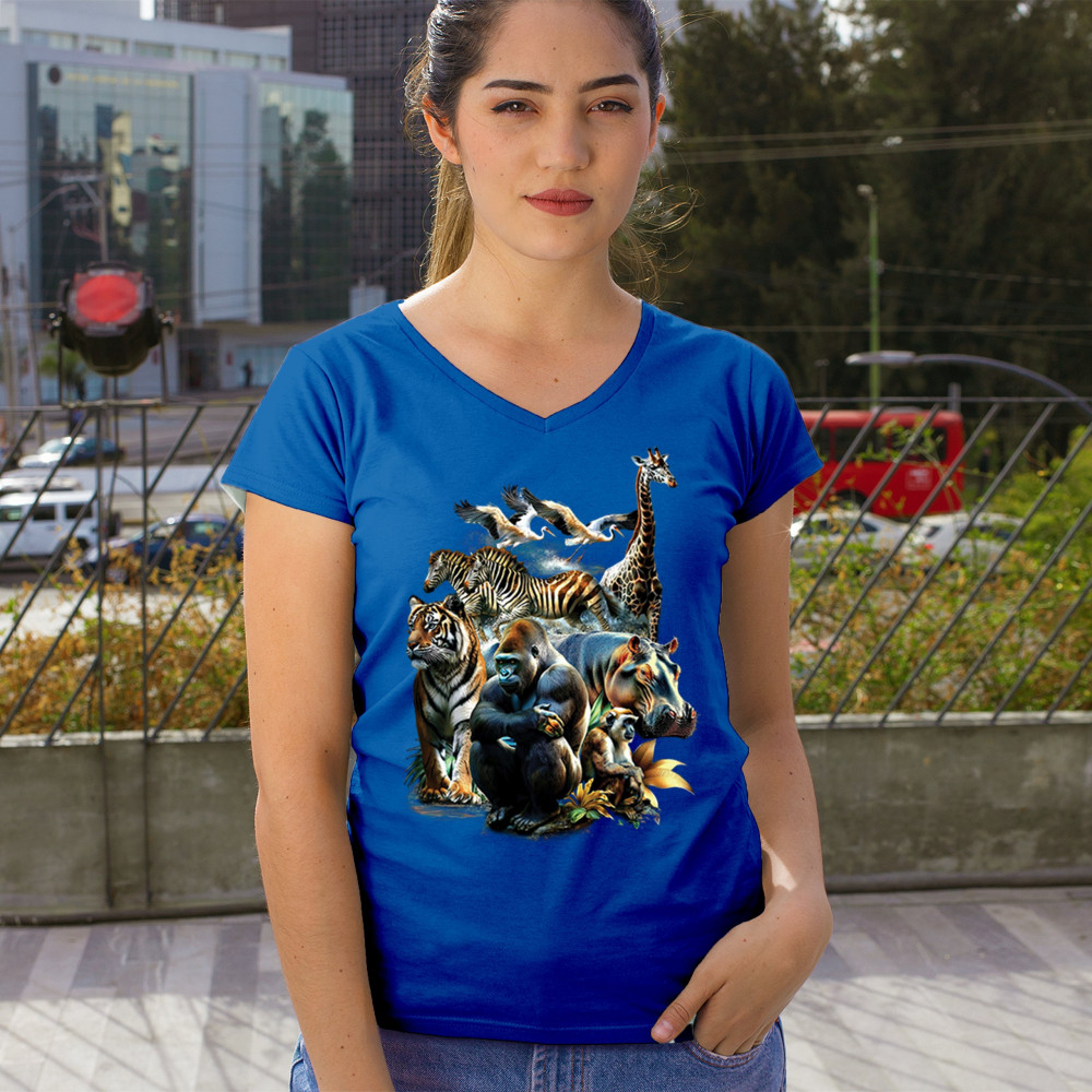 Packed with fierce energy and vibrant color, this wildlife design features a jungle coalition of gorilla, tiger, monkey, zebra, giraffe, hippo, and birds. A powerful tribute to animal beauty, biodiversity, and nature's harmony. Perfect for jungle tour enthusiasts, zoo visitors, or anyone passionate about wild conservation and stunning creature art.