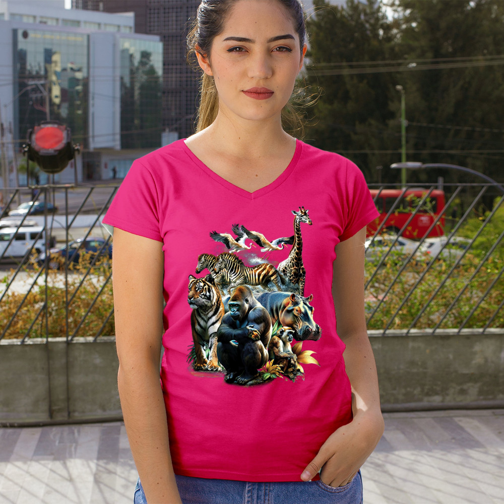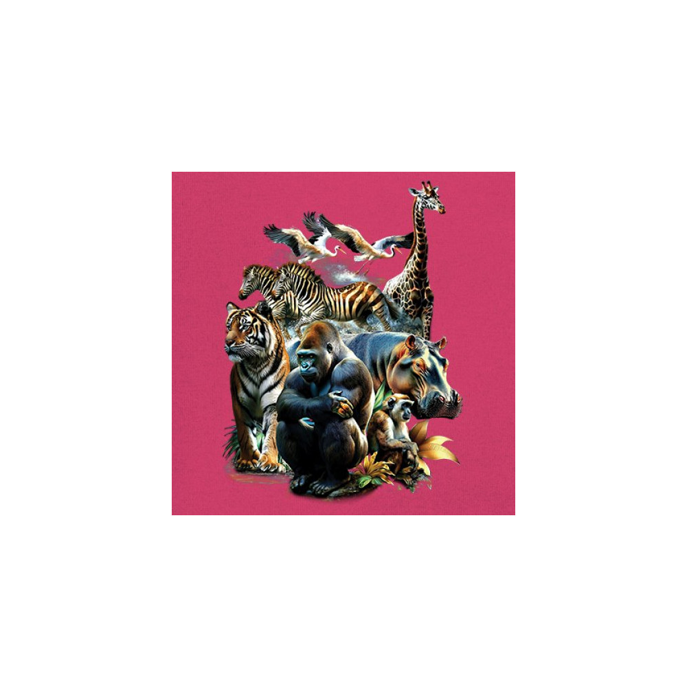 Packed with fierce energy and vibrant color, this wildlife design features a jungle coalition of gorilla, tiger, monkey, zebra, giraffe, hippo, and birds. A powerful tribute to animal beauty, biodiversity, and nature's harmony. Perfect for jungle tour enthusiasts, zoo visitors, or anyone passionate about wild conservation and stunning creature art.